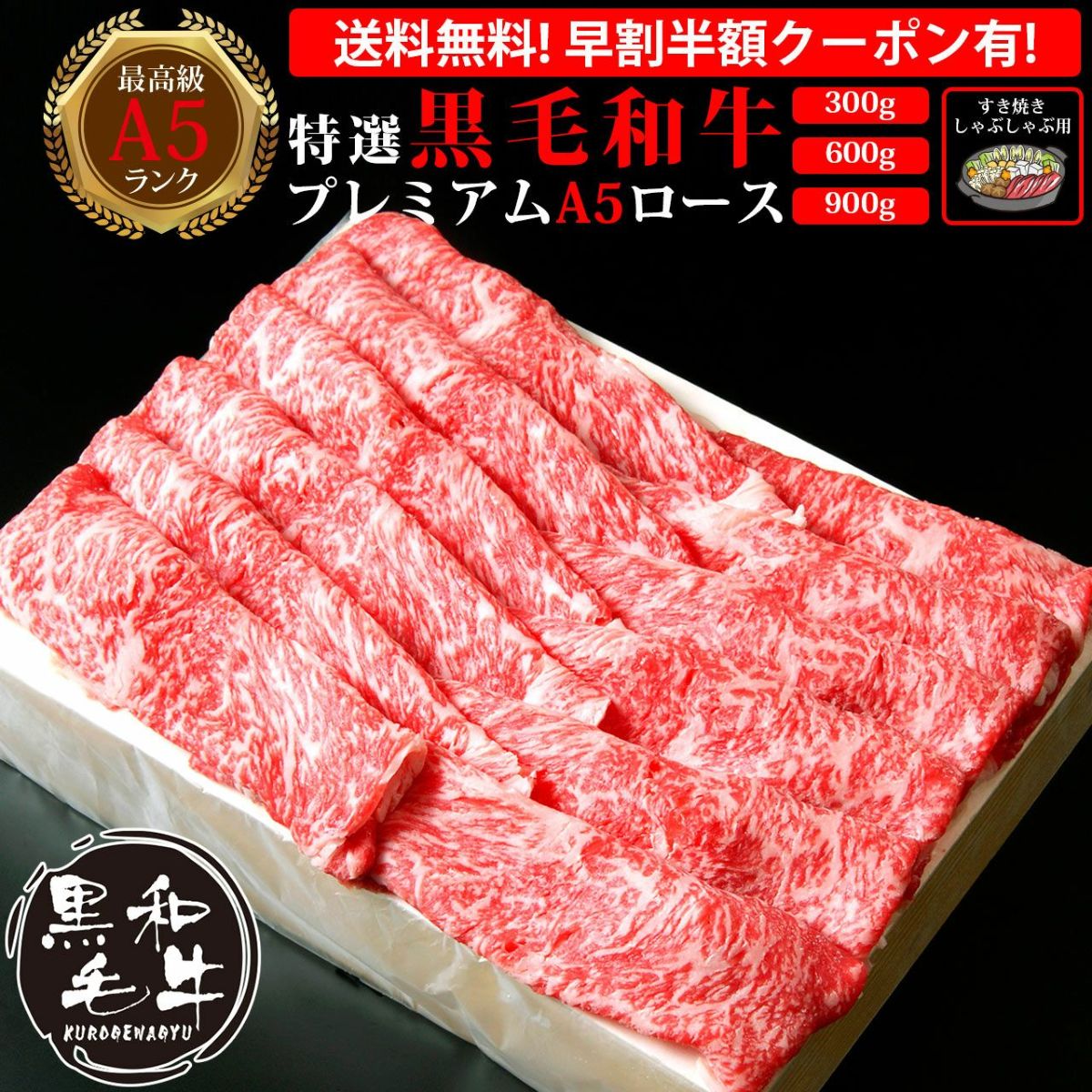 即日発送/送料無料【300g~900g】特選黒毛和牛プレミアムA5ロース すき焼き・しゃぶしゃぶ用 ≪あすニク≫
