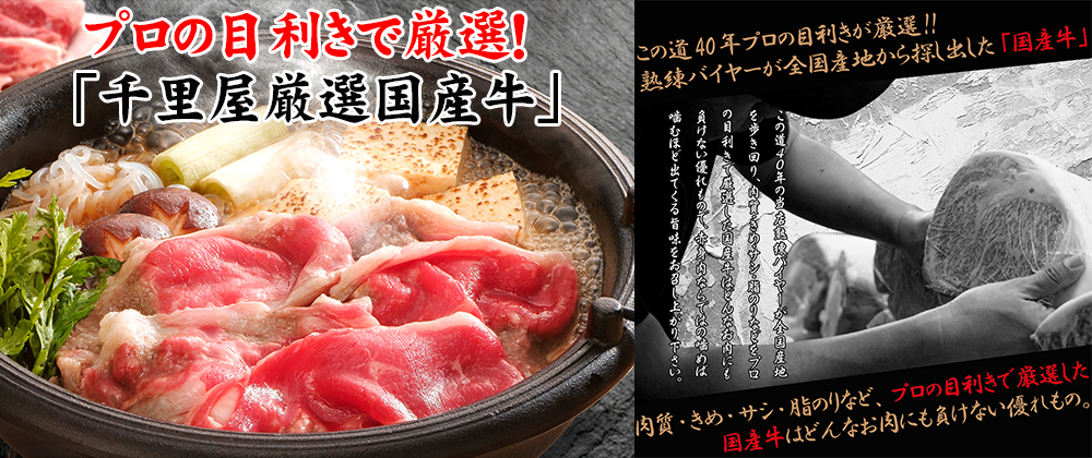 さてさて今回もご紹介する商品は千里屋の熟練バイヤーが全国を歩き回り目利した厳選国産牛です。ブランド牛に負けず劣らずの肉質・旨みなど、お財布の紐を少し緩めるだけで手に届く価格帯も魅力的で美味しいお肉でいつもの食卓がワンランクアップするそんな2商品となっております。ぜひ1度この機会にご賞味下さい。