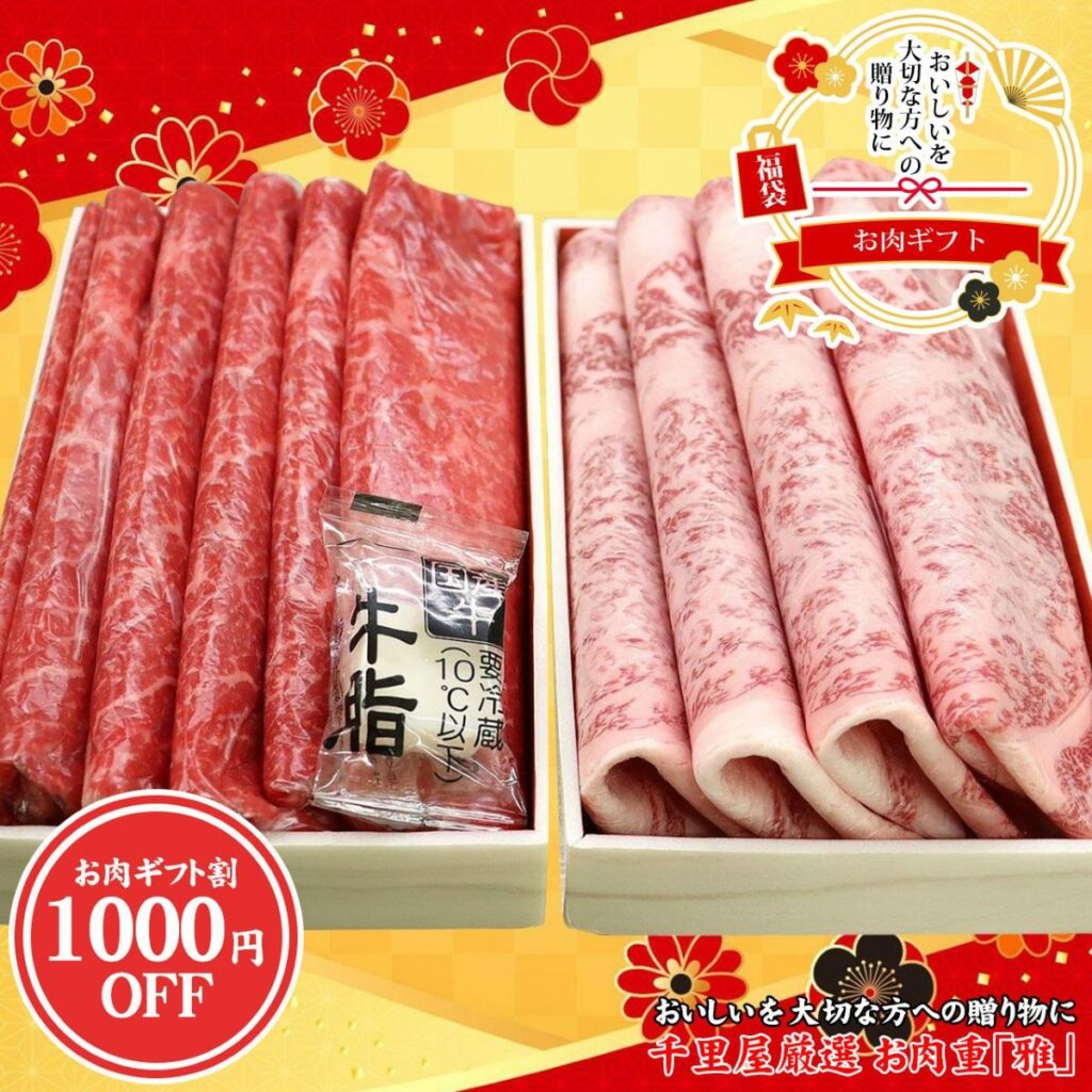 豪華なお肉重を目の前にするとキレイな霜降りの白色とお肉自体の赤色がベストなコントラストを表現していて食欲がそそりますね(笑) シンプルにお鍋でしゃぶしゃぶして軽くポン酢をつけ、召し上がって頂ければ最高のひとときを感じることができると思います。召し上がり方は様々あり、どんな方法でも美味しく召し上がって頂けると思う逸品です。ぜひこの機会に千里屋の肉重セットをお召し上がり下さい。それでは今回はこのへんで良いお肉LIFEをお過ごし下さい。