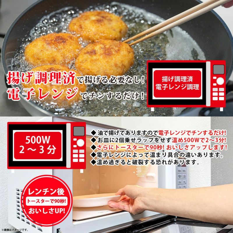 油で揚げてあり調理済みなので揚げる手間が不要で 召し上がる時はコロッケを重ねずお皿に並べてラップ をせずに電子レンジ(500W)で2~3分チンするだけ簡単!
