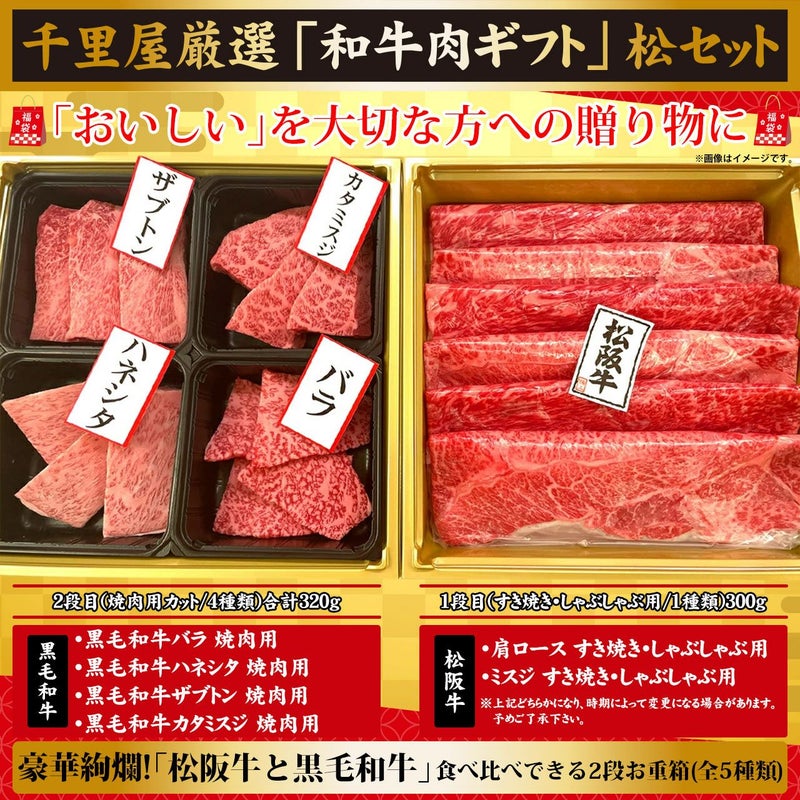 【豪華2段/全5種類/福袋】松阪牛・黒毛和牛食べ比べ 千里屋厳選 福袋 和牛肉ギフト【松】 4~5人前