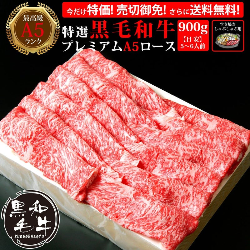 \お得に購入!1000円OFFクーポン!/ 即日発送/送料無料【900g】特選黒毛和牛プレミアムA5ロース すき焼き・しゃぶしゃぶ用 ≪あすニク≫