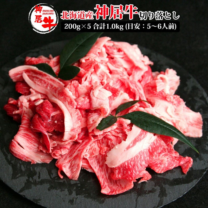送料無料【200g×5 合計1.0kg】北海道産神居牛 切り落とし 小分けパック 5~6人前