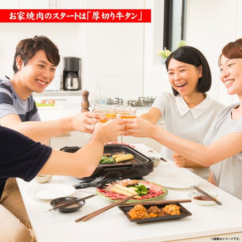 贅沢に厚切り焼肉用にカットされた牛タンは 柔かい肉質と栄養素が豊富でダイエットや 美容にも良い食材1つとされております。 お家焼肉やバーベキューを美味しい牛タンで スタートしてみてはいかがでしょうか。