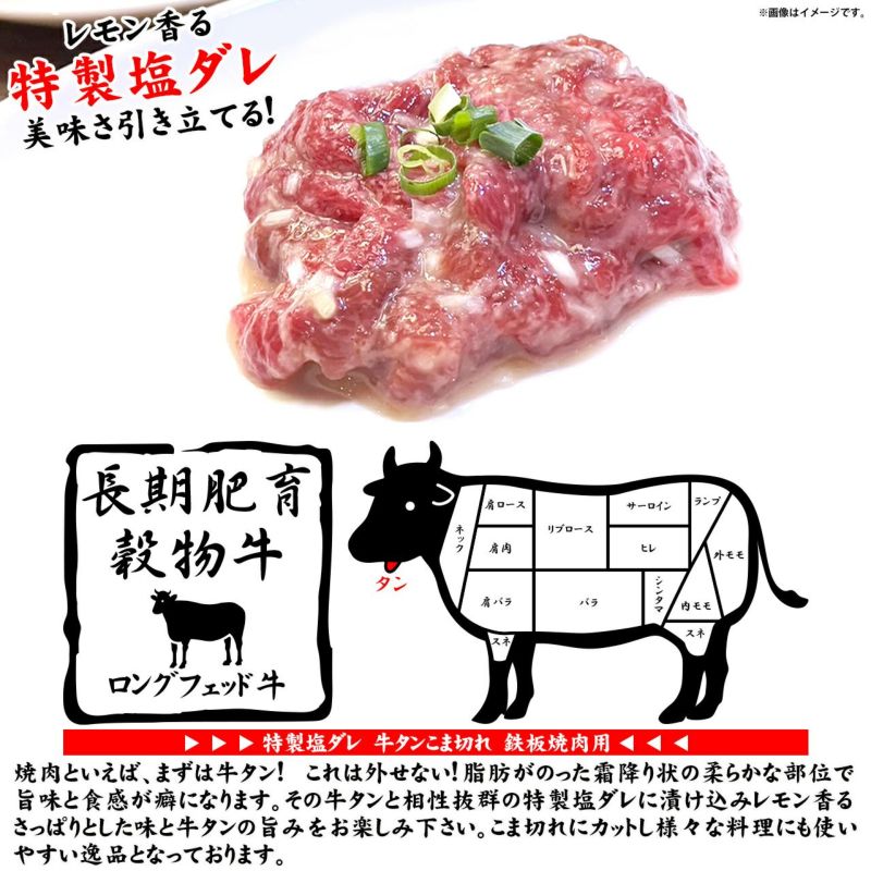 【特製塩ダレ牛タン こま切れ】鉄板焼肉用 / 1.0kg (目安:5~6人前)