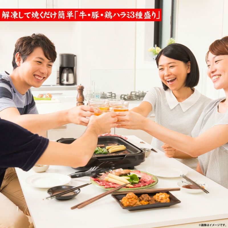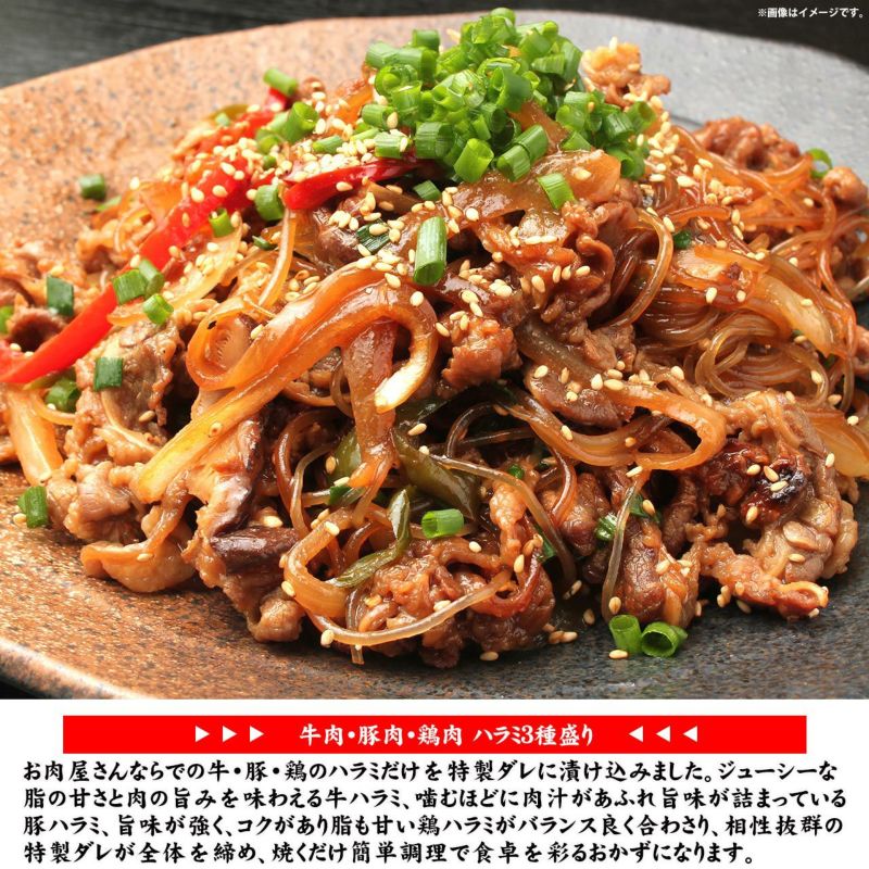 お肉屋さんならでは「牛・豚・鶏」3拍子揃った 【ハラミ3種盛り】500g (目安:3~4人前)