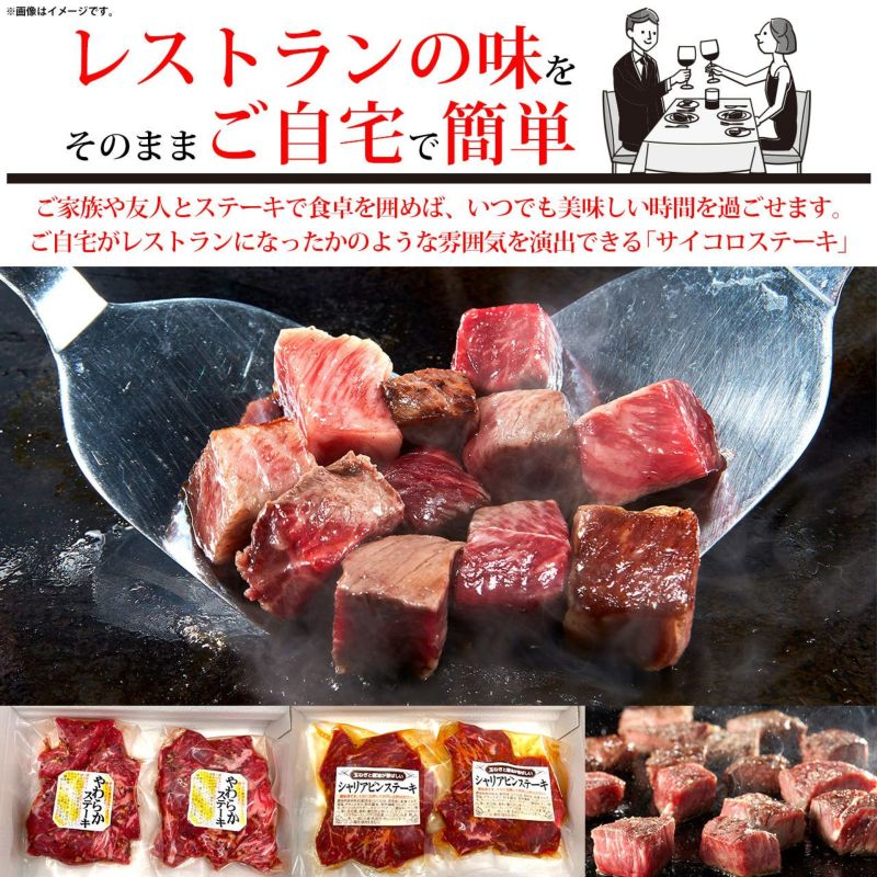 北海道の単一生産者によるブランド牛で高品質な 国産「神居牛」をサイコロ状にカットしたお肉を ガーリックオイルソースとシャリアピンオイルソ ース2種類に漬け込んだサイコロステーキを真空 パックにし美味しさそのままギュッと閉じ込めて 逃がさないようし専任スタッフが真心を込めお届 けします。