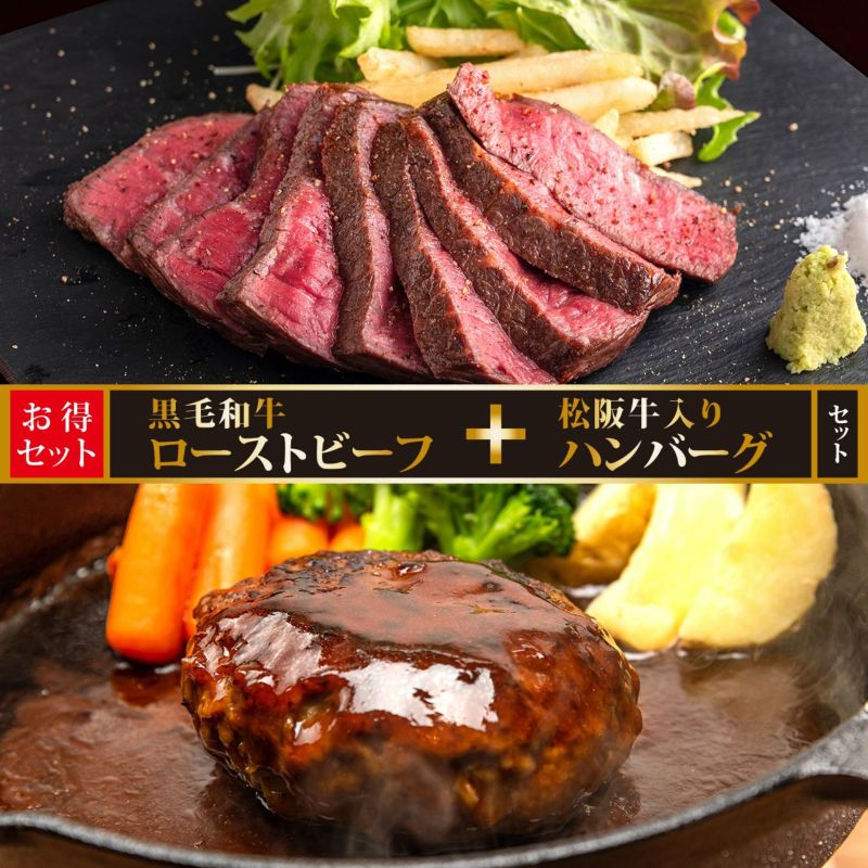【即日発送/送料無料】惣菜スペシャルセット【250g】国産黒毛和牛ローストビーフ+【3個】松阪牛入りハンバーグ ≪あすニク≫