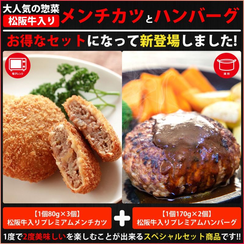 【即日発送/送料無料】松阪牛入りデラックス惣菜セット【5個】松阪牛入りプレミアムメンチカツ +【2個】松阪牛入りプレミアムハンバーグ ≪あすニク≫