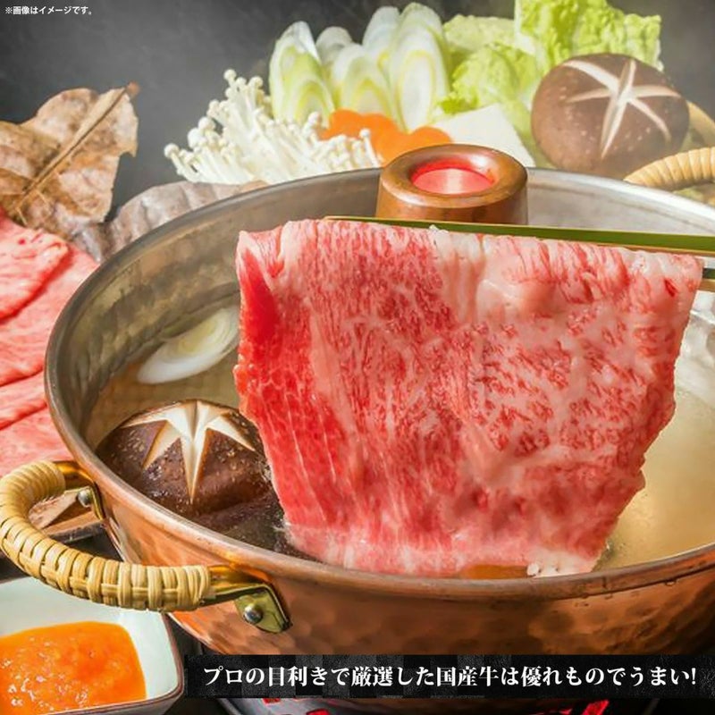 この道40年の当店熟練バイヤーが全国産地を歩き回り、肉質・きめ・ サシ・脂のりなどをプロの目利きで厳選した国産牛はどんなお肉にも 負けない優れものですので家族や友人と贅沢にお家すき焼き・しゃぶ しゃぶをお楽しみ下さい。