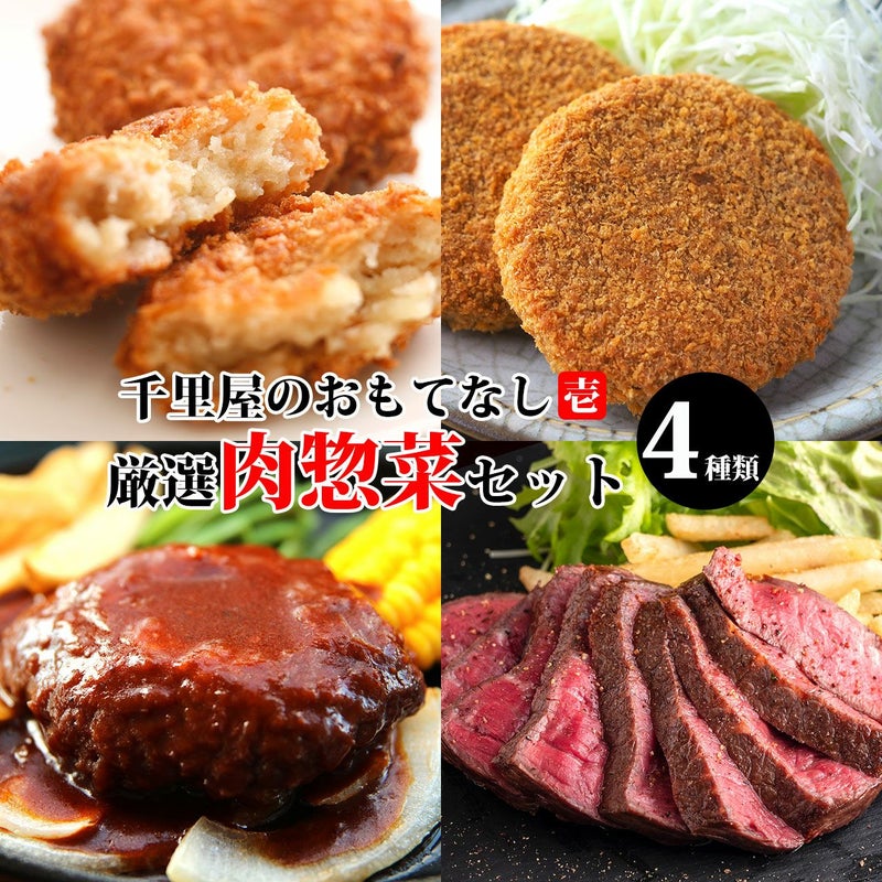 千里屋のおもてなし【全4種類】厳選肉惣菜セット(コロッケ・メンチカツ・ハンバーグ・ローストビーフ)