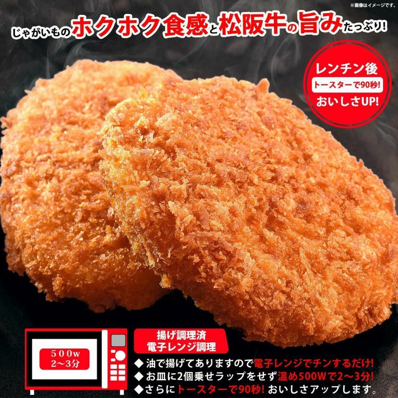 和牛の中の最高峰「松阪牛」特有の上質な旨み甘みを 感じられると共に じゃがいものホクホクとした食感が たまらないサクうまっ!コロッケです。 油で揚げてあり調理済みなので揚げる手間が不要で電子レンジ(500W) で2~3分チンするだけ簡単!