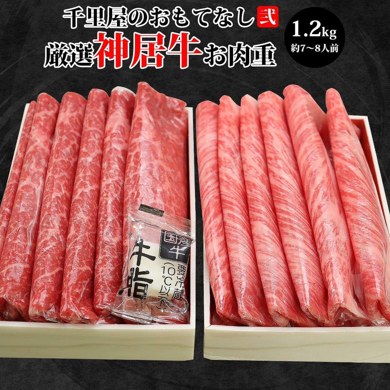 千里屋のおもてなし【全2種類/合計1.2kg】厳選神居牛 お肉重セット 7~8人前